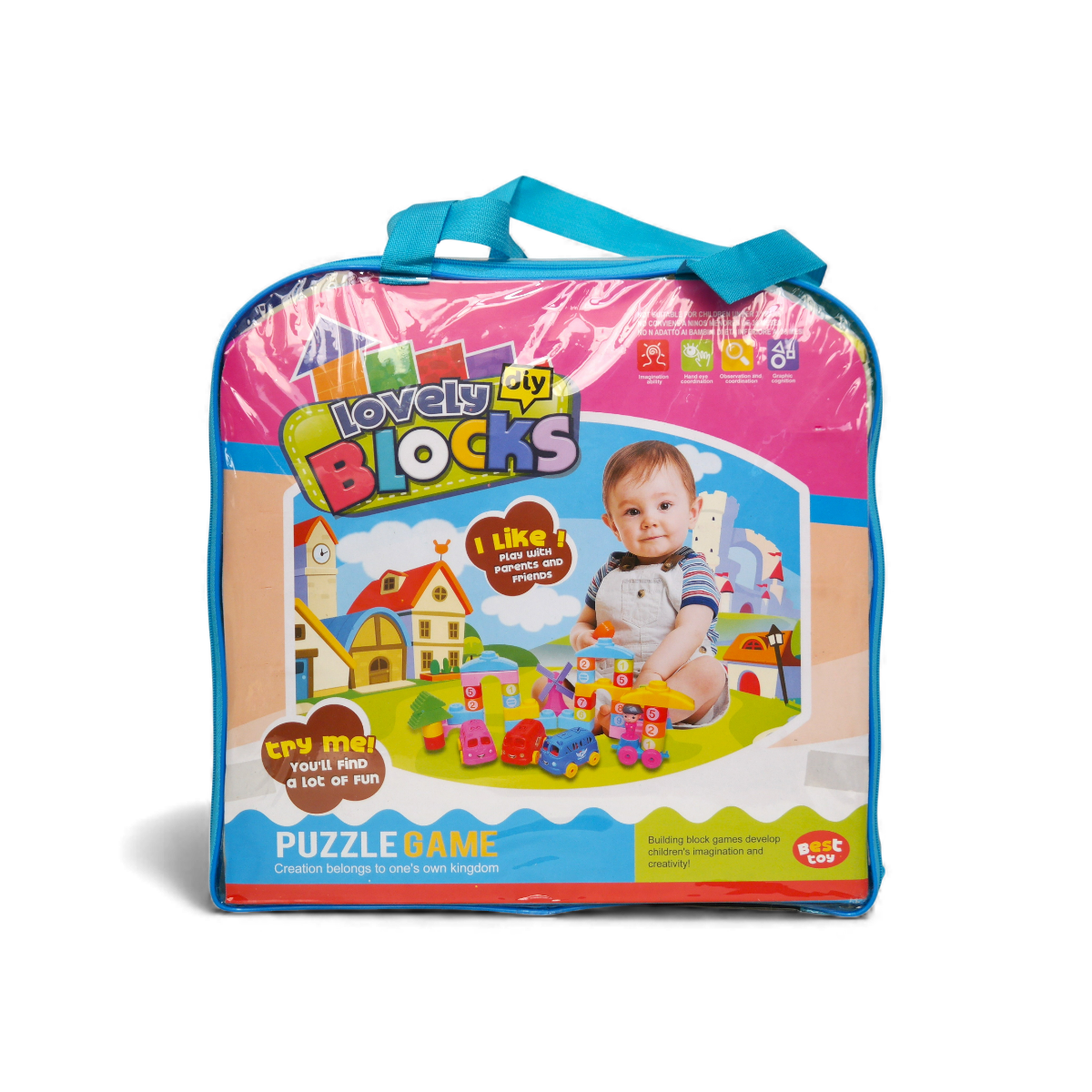 Este set es un kit de bloques de construcción portátiles para niñas y niños, con bolso tipo mochila que facilita el almacenamiento y transporte de las piezas. El bolso incluye una variedad de bloques grandes, ruedas y conectores para que los pequeños puedan crear figuras, estructuras o vehículos a su gusto.