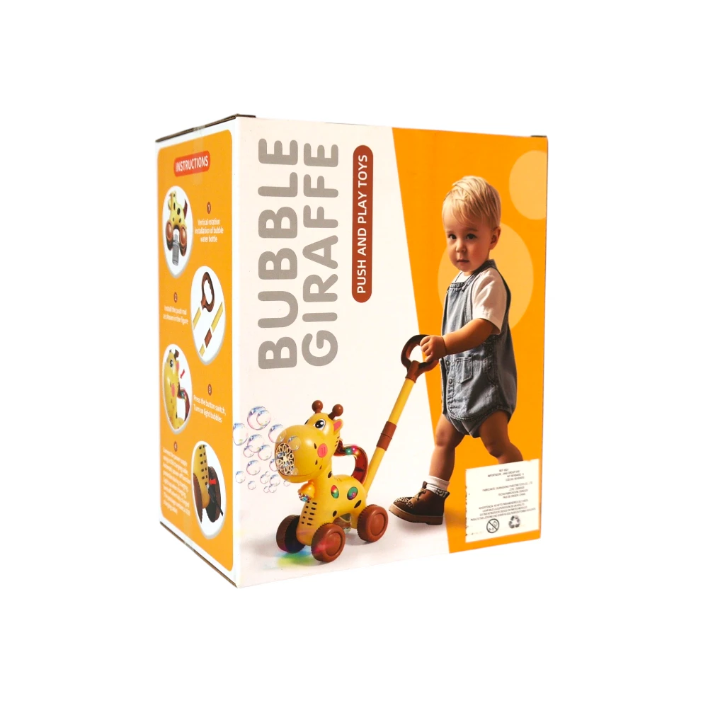 Perfecto para acompañar a los niños en sus primeros pasos mientras se divierten. Su diseño colorido en forma de jirafa llama la atención de los pequeños y los motiva a caminar mientras empujan el juguete.