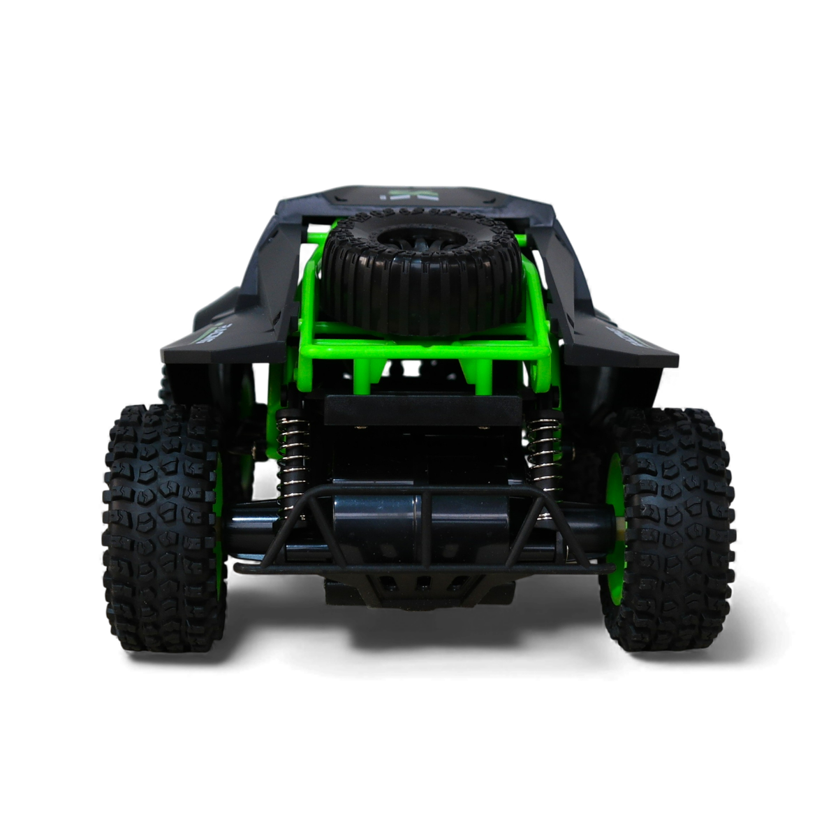 Cuenta con llantas grandes y texturizadas que mejoran el agarre y facilitan maniobras rápidas. Su diseño deportivo combina colores vibrantes con un estilo agresivo que destaca al instante.