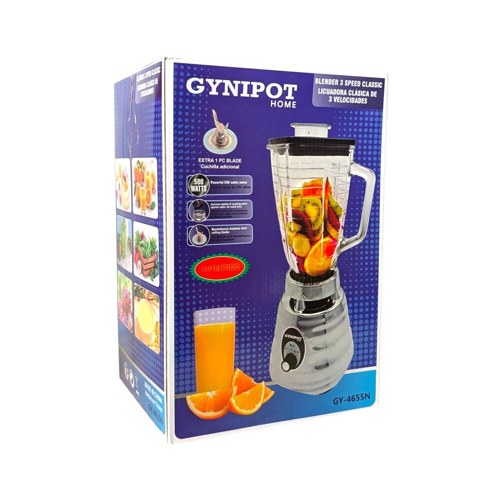 Licuadora clásica de 500W con 3 velocidades y vaso resistente. Ideal para preparar jugos, batidos y mezclas fácilmente en casa.