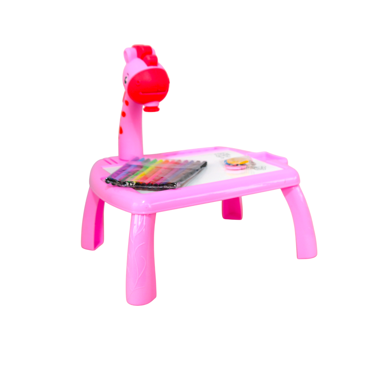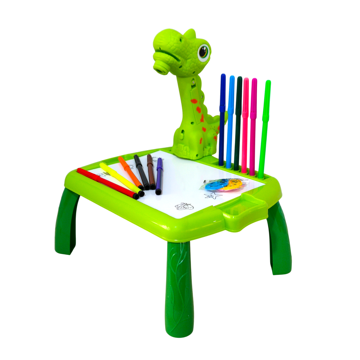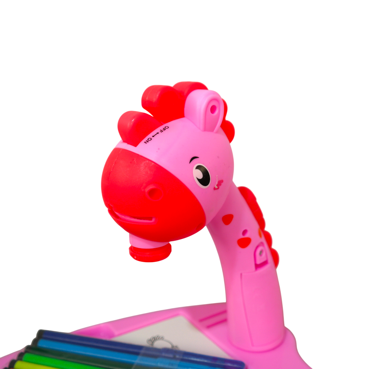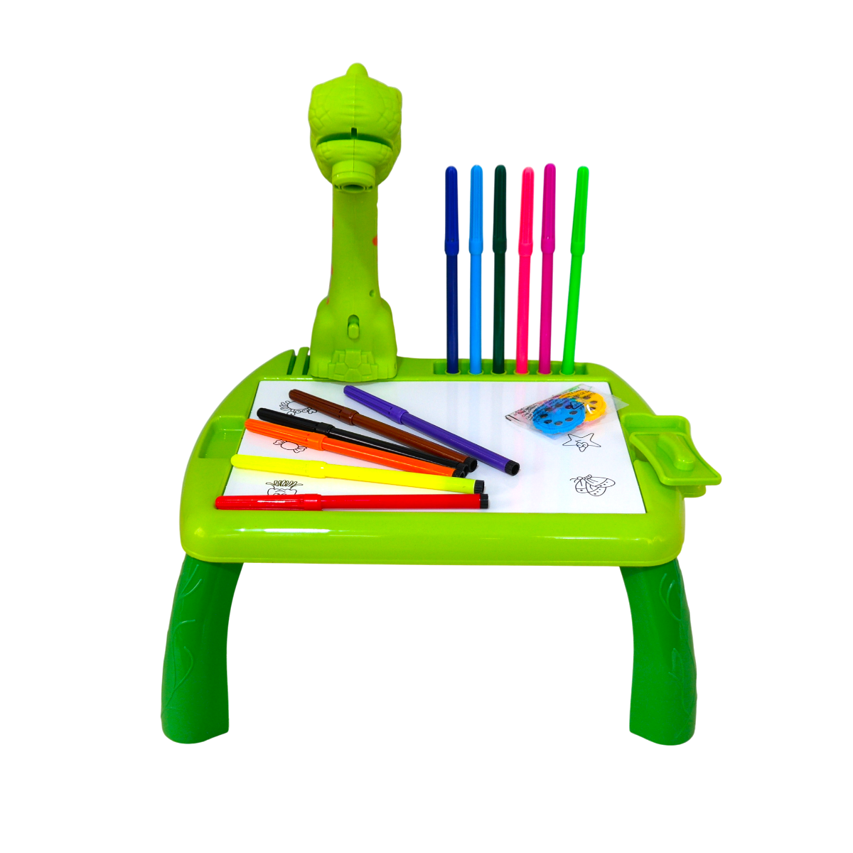 El set cuenta con un proyector incorporado en forma de jirafa o dinosaurio que proyecta imágenes brillantes sobre la superficie de dibujo. Los niños pueden trazar fácilmente los contornos y dar vida a sus propias creaciones, como si tuvieran un asistente de arte personal.