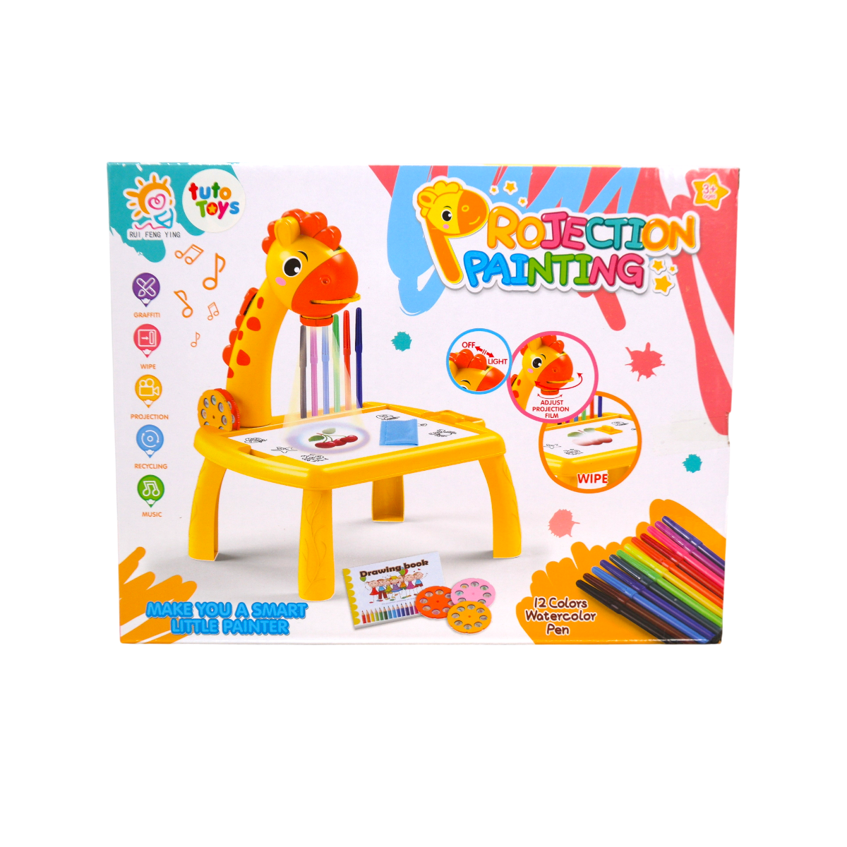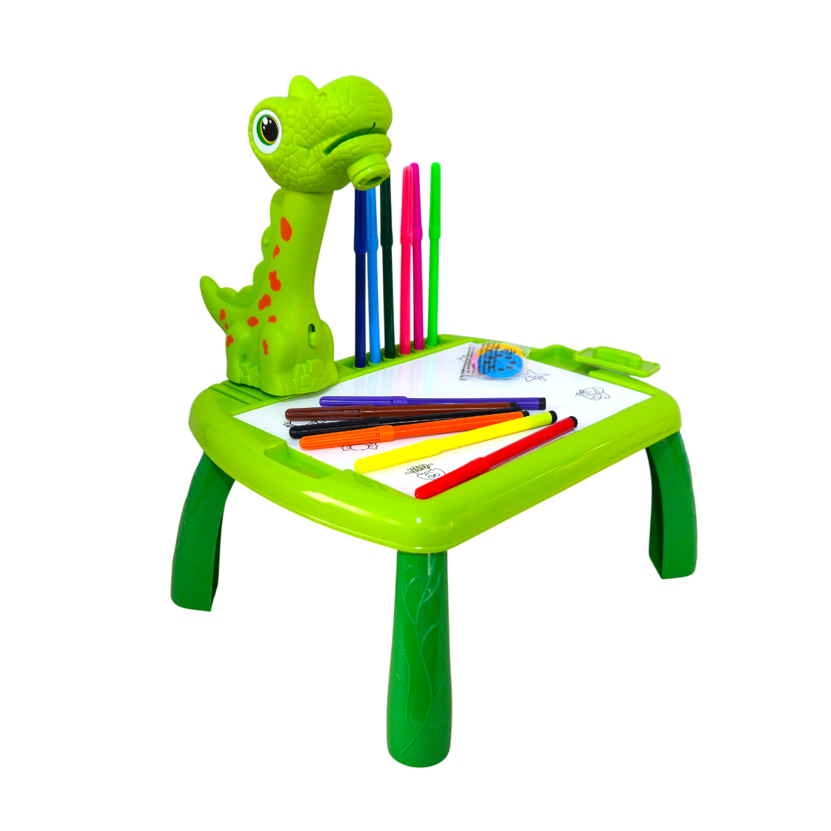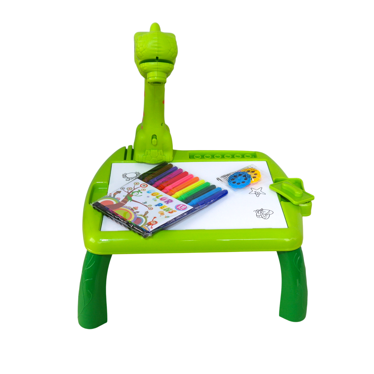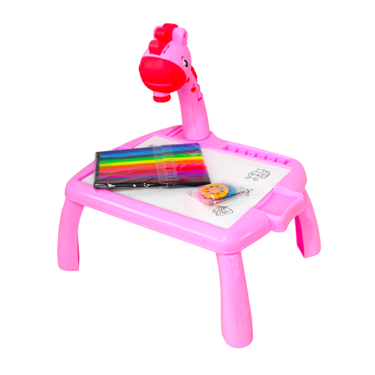 El set cuenta con un proyector incorporado en forma de jirafa o dinosaurio que proyecta imágenes brillantes sobre la superficie de dibujo. Los niños pueden trazar fácilmente los contornos y dar vida a sus propias creaciones, como si tuvieran un asistente de arte personal.