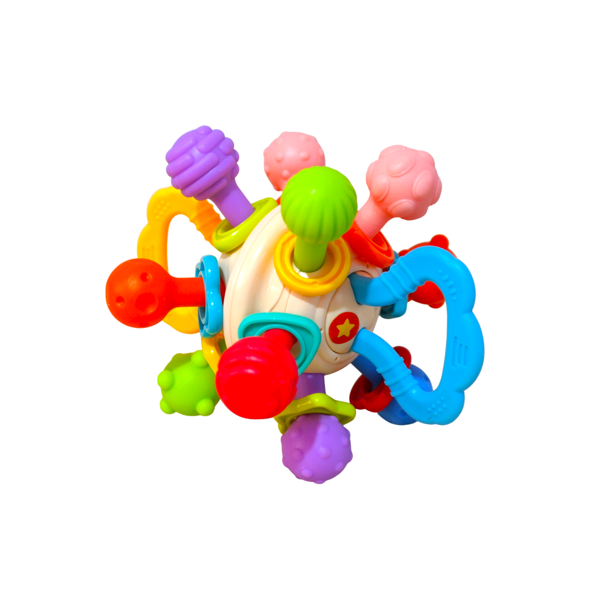 Fabricado con materiales de alta calidad, libres de BPA y bordes redondeados, es completamente seguro para morder, manipular y explorar. Su diseño colorido no solo entretiene, sino que también estimula la percepción visual del bebé con tonos brillantes y contrastantes. Ideal para bebés de 0 meses en adelante.