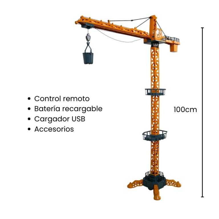 - Incluye: Torre grúa, control remoto, batería recargable, cargador USB y accesorios